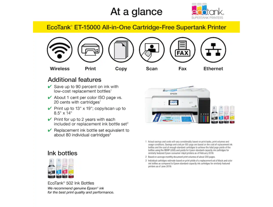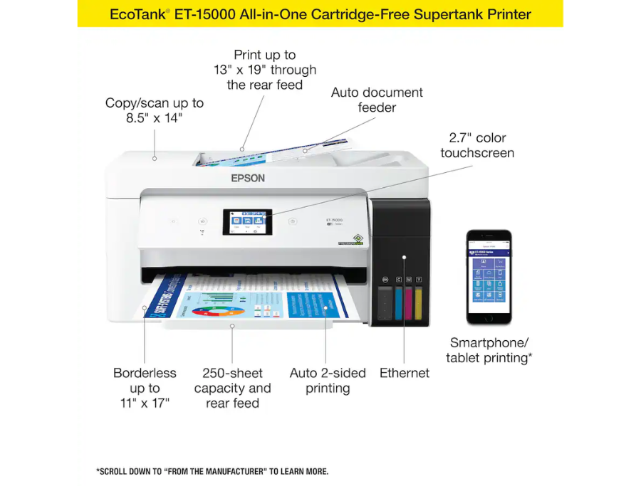Versatile Paper Handling: Prints up to 13″ x 19″ via rear specialty tray.