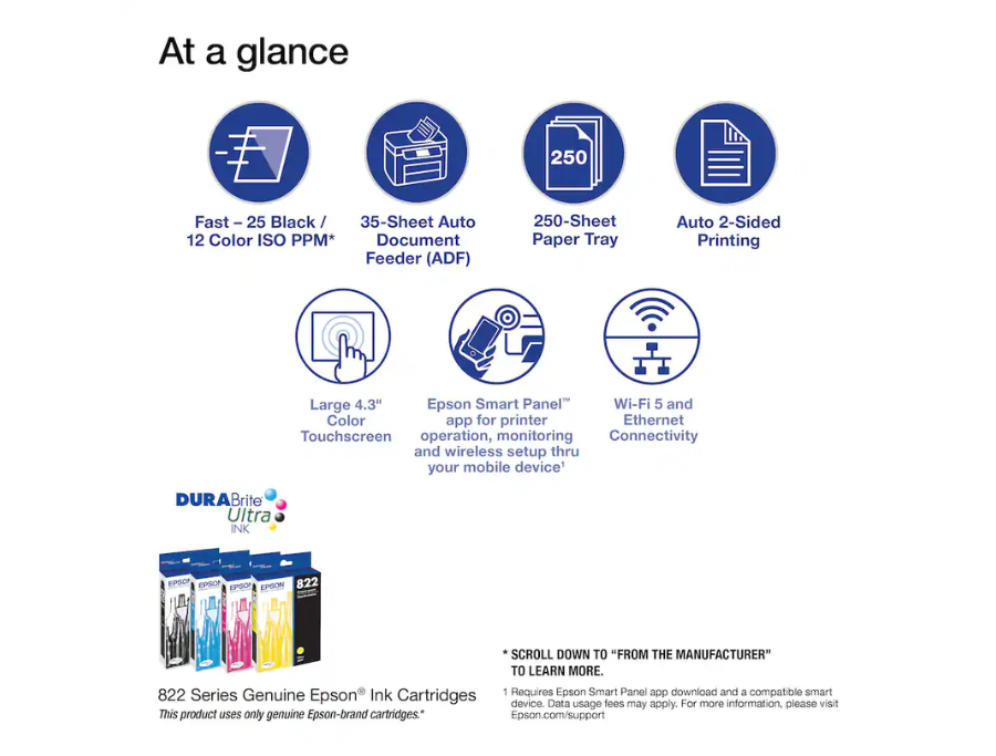 Professional Quality: Sharp text and vibrant colors with DURABrite Ultra pigment inks.