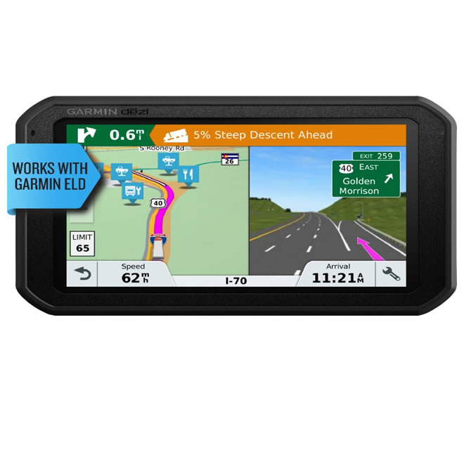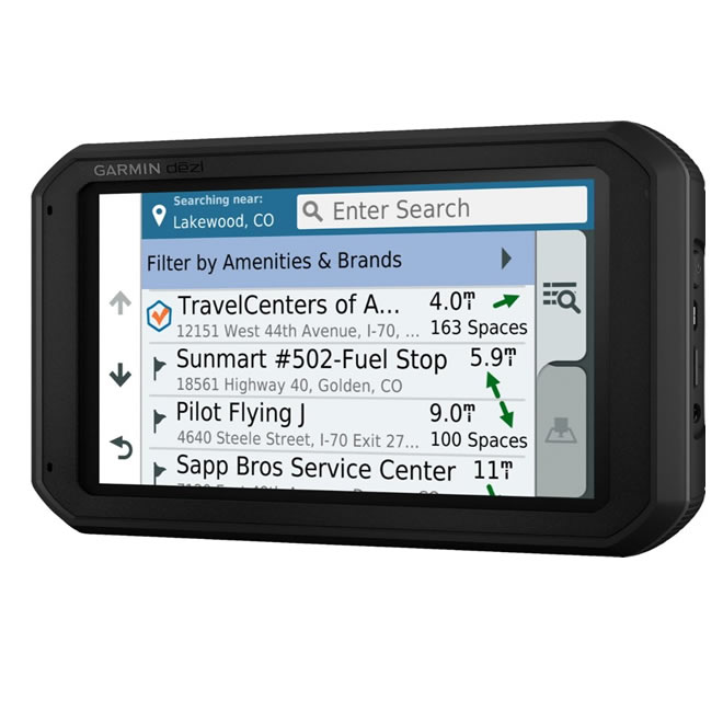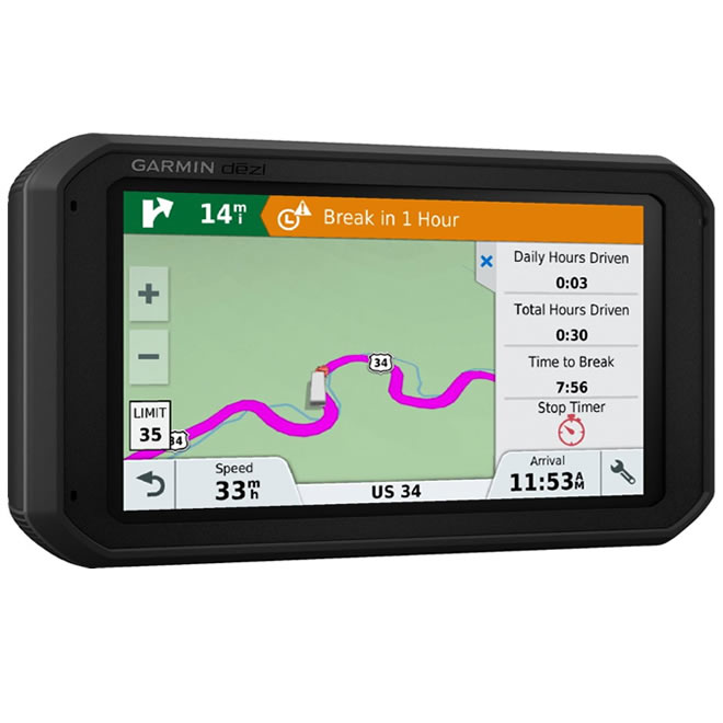 Equip your heavy-duty vehicle with this this 7-inch Garmin dezl truck navigator. It provides free lifetime map updates via a Wi-Fi connection, and its specialized directory and notification system enable optimal break planning for long-haul drivers. Receive appropriate road warnings based on your cargo profile via the customized truck routing feature of this Garmin dezl truck navigator.